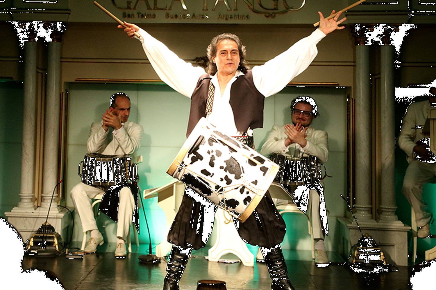 O espetáculo de tango e folclore, que dura cerca de uma hora e meia, reúne 19 artistas talentosos em palco. A orquestra é constituída por um quinteto composto por piano, bandoneon, guitarra crioula, violino e contrabaixo, acompanhados por dois cantores de tango, quatro casais de dançarinos e um charanguista que proporciona sons tradicionais da música andina. O espetáculo inclui também uma demonstração de boleadoras, evocando a energia e a habilidade da cultura gaúcha.